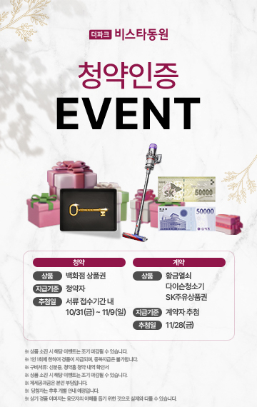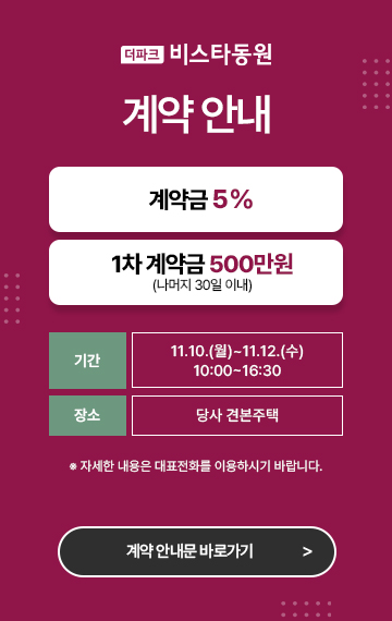 쾌적한 자연은 더 크게 누리는 자리에 더파크 비스타동원이 찾아옵니다.